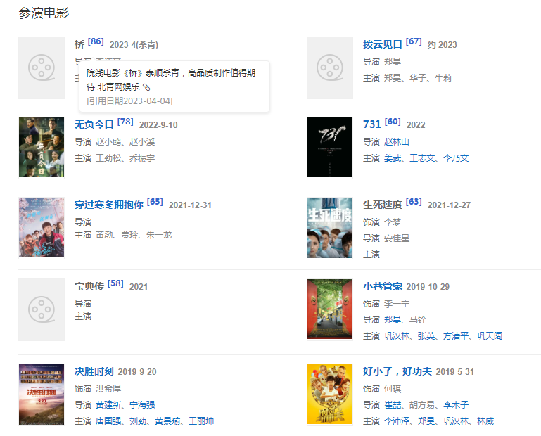 代表作品:甄嬛傳、二炮手、蘭花花、甲子園、駱駝祥子