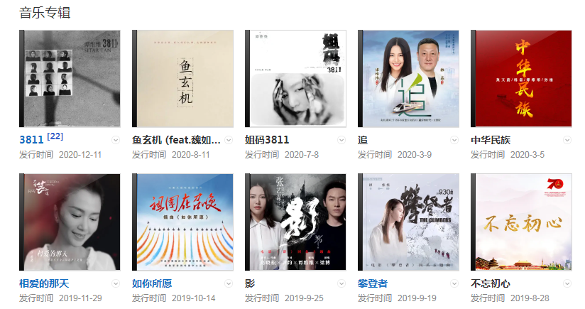 2020年2月,演唱文藝界抗擊疫情主題MV《堅信愛會贏》;10月21日,獻唱電影《金剛川》主題曲《英雄贊歌》 ;12月11日,發(fā)行專輯《3811》。