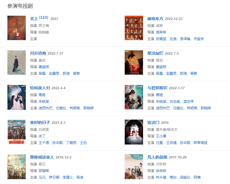 2011年,憑借諜戰(zhàn)劇《斷刺》獲得第29屆中國電視劇飛天獎優(yōu)秀女演員提名。2013年,主演戰(zhàn)爭劇《亂世三義》。