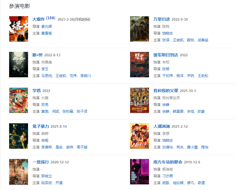 代表作品:柳如是、軍中樂園、你好,瘋子!、獵場、脫身、大唐榮耀、新世界