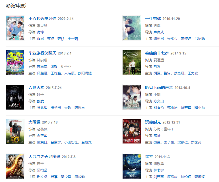 2011年,主演成長愛情奇幻電影《星空》。