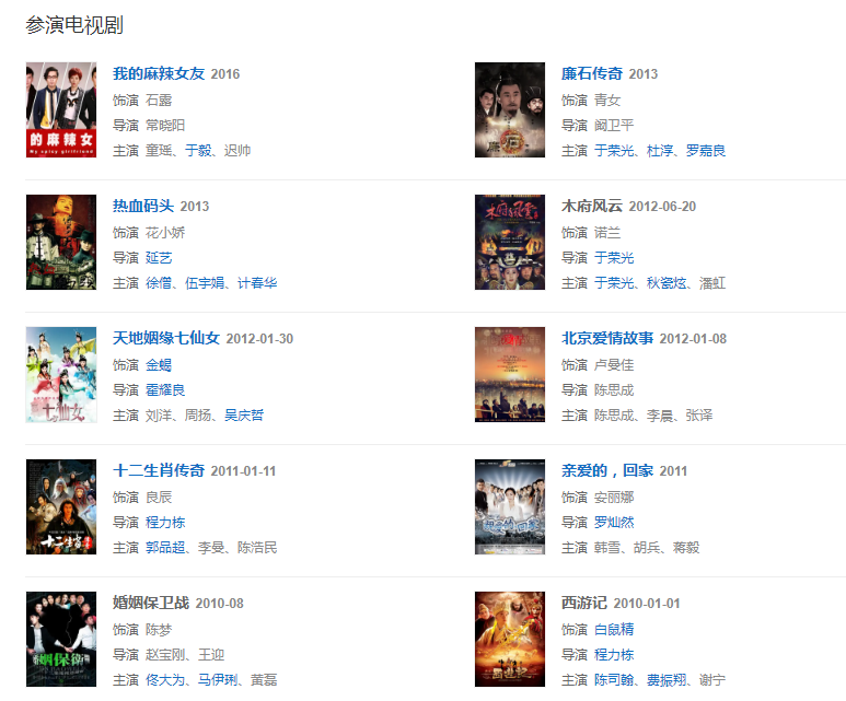 代表作品:一米陽光、拿什么拯救你,我的愛人、排球女將、親愛的,回家、女才男貌、婚姻保衛(wèi)戰(zhàn)、想吃麻花現(xiàn)給你擰、九里香