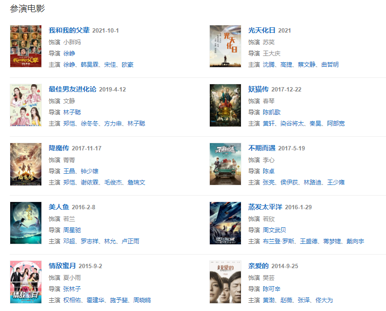 代表作品:妖貓傳、美人魚、白鹿原、錢學(xué)森、長江7號、龍嶺迷窟、云南蟲谷