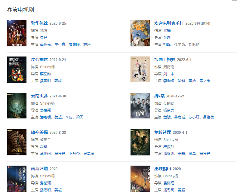 2020年4月1日,主演的探險懸疑劇《龍嶺迷窟》正式開播,劇中飾演Shirley楊 。6月12日,參與芒果TV選拔綜藝《乘風(fēng)破浪的姐姐》,最終以第五名的成績成功成團。10月30日,參與《乘風(fēng)破浪的姐姐》的成團綜藝節(jié)目《姐姐的愛樂之程》。12月21日,特別出演的民國懸疑推理劇《拆·案》在愛奇藝獨家上線,劇中飾演醫(yī)生公輸春。12月31日,隨組合X-SISTER參演湖南衛(wèi)視跨年演唱會,演唱歌曲《無價之姐》、《Lady Land》。同年,友情出演電視劇《旗袍美探》,飾演黎惠蘭。