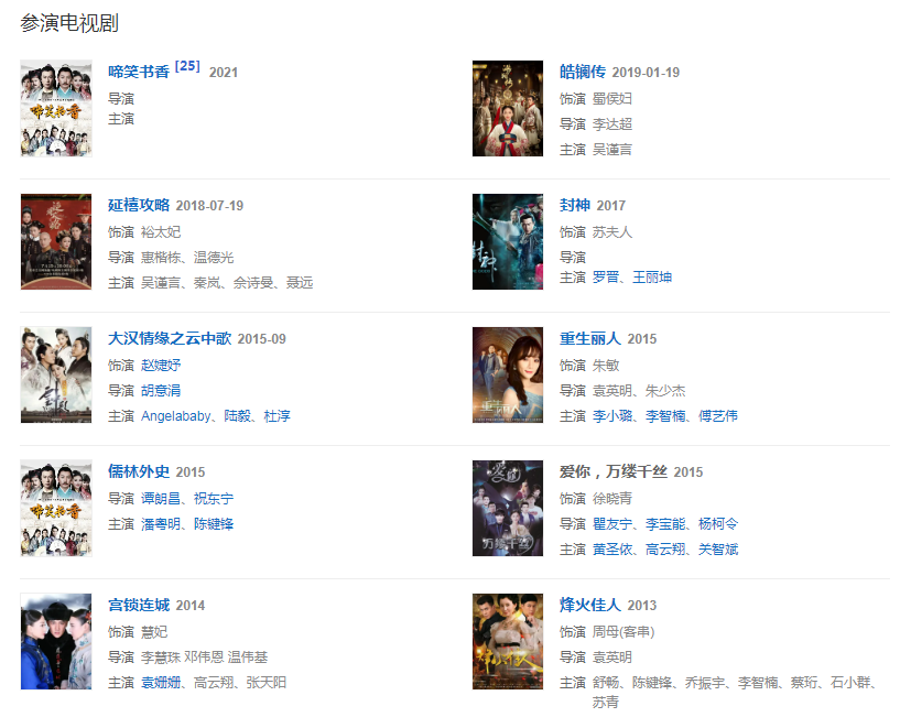 2021年,參演電視劇《儒林外史之啼笑書香》。
