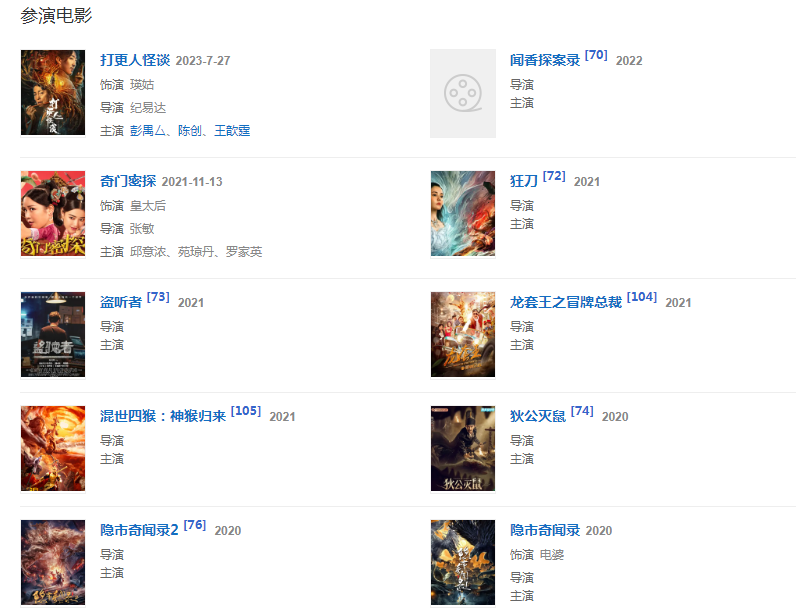 2021年3月30日,出演電視劇《玉昭令第一季》播出;9月2日,其出演的奇幻喜劇《霧都奇遇夜》在中山影視城舉行開機儀式;11月13日,主演電影《奇門密探》在愛奇藝視頻全網(wǎng)獨播。