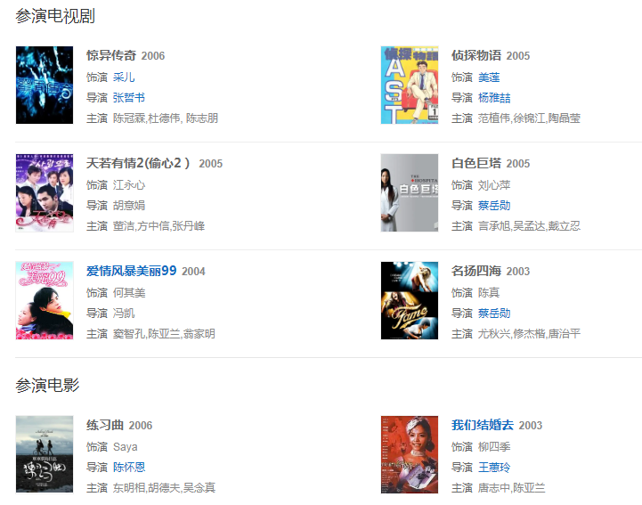 2004年,首次出演《美麗99》女主角,之后接拍了《偵探物語》并且接到央視情感劇《天若有情2》。