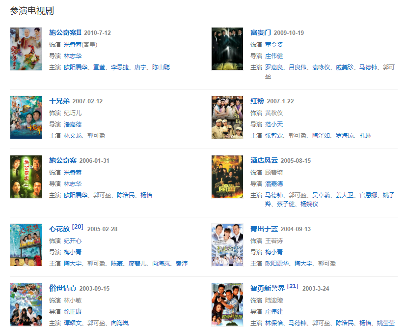 代表作品:刑事偵緝檔案、創(chuàng)世紀、酒店風云、法網(wǎng)伊人