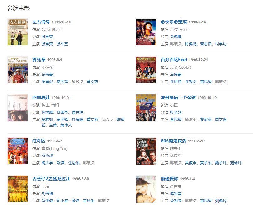 代表作品:最佳損友、赤裸羔羊、不道德的禮物、愈快樂愈墮落、倚天屠龍記之魔教教主