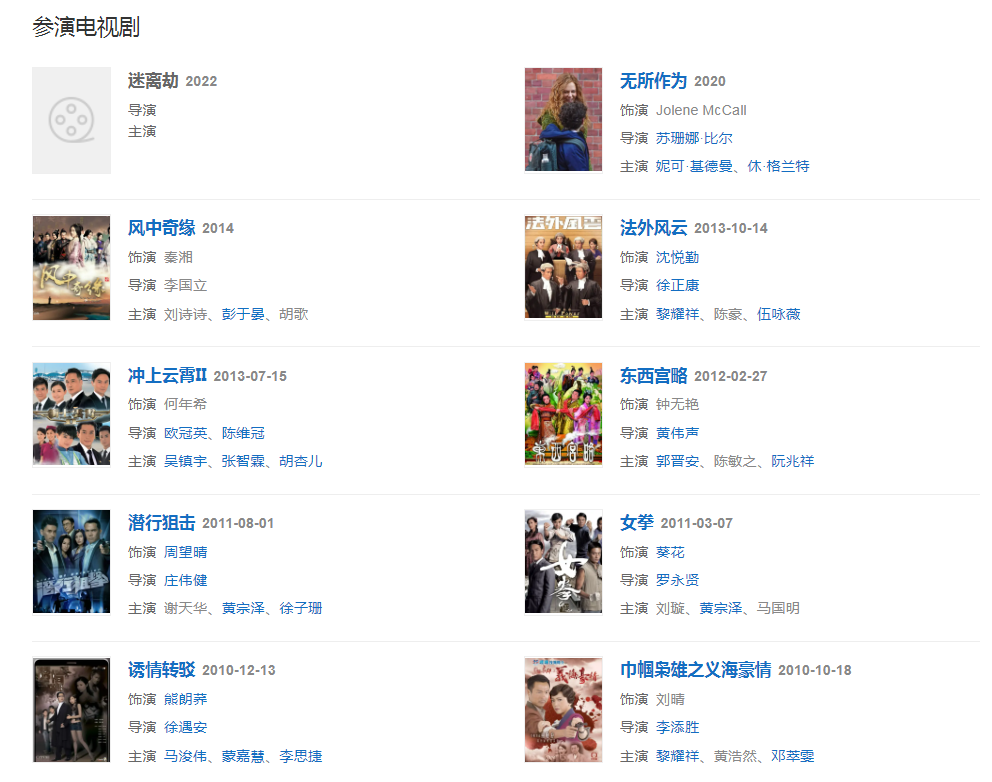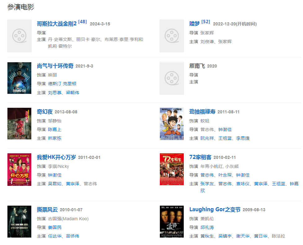 代表作品:東西宮略、巾幗梟雄之義海豪情、沖上云霄II、舞動(dòng)全城