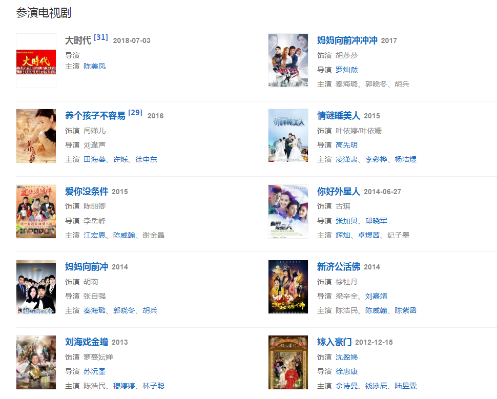 代表作品:九指新娘、再見阿郎、風云、娘家的故事、大醫(yī)院小醫(yī)師、情謎睡美人