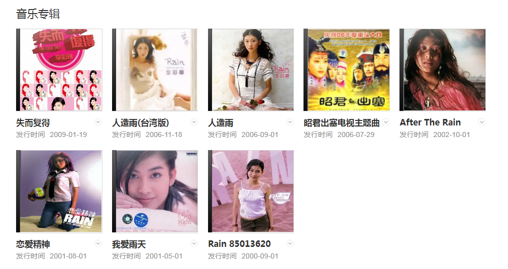 2000年9月,發(fā)行首張唱片《Rain 85013620》。