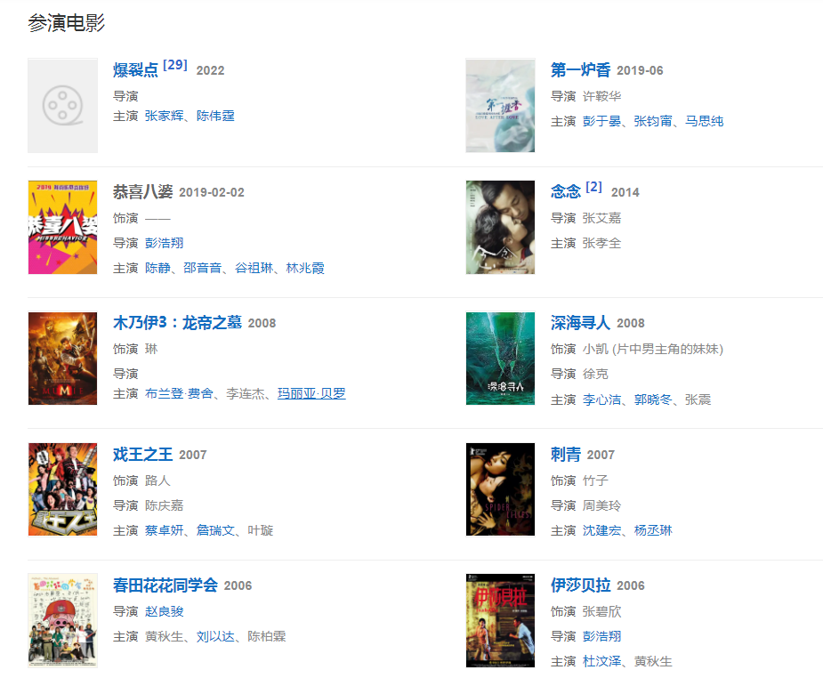 2019年6月,參演根據(jù)張愛(ài)玲小說(shuō)改編的電影《第一爐香》。