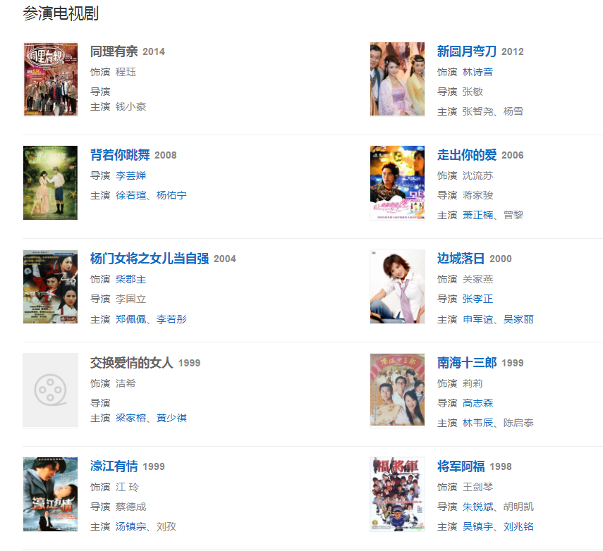 2001年,出演了古裝傳奇劇《楊門女將之女兒當自強》。