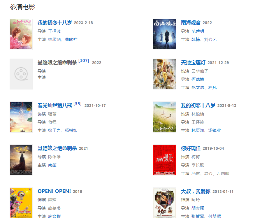 2023年2月18號,主演的青春電影《我的初戀十八歲》上映,在片中飾演中年林悅怡;4月6日,主演的電視劇《恩愛兩不疑》播出。7月29日,參演的電視劇《大宋少年志2》播出。