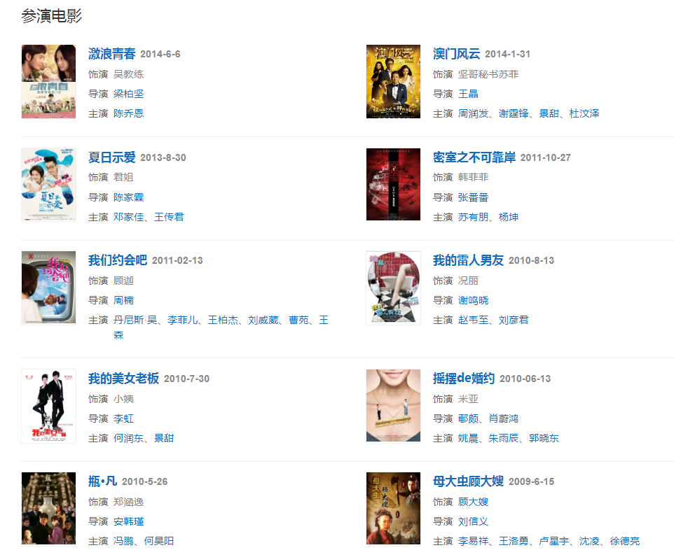 2011年參與拍攝電影《密室之不可靠岸2》;參演電影《我們約會吧》2月13日上映。