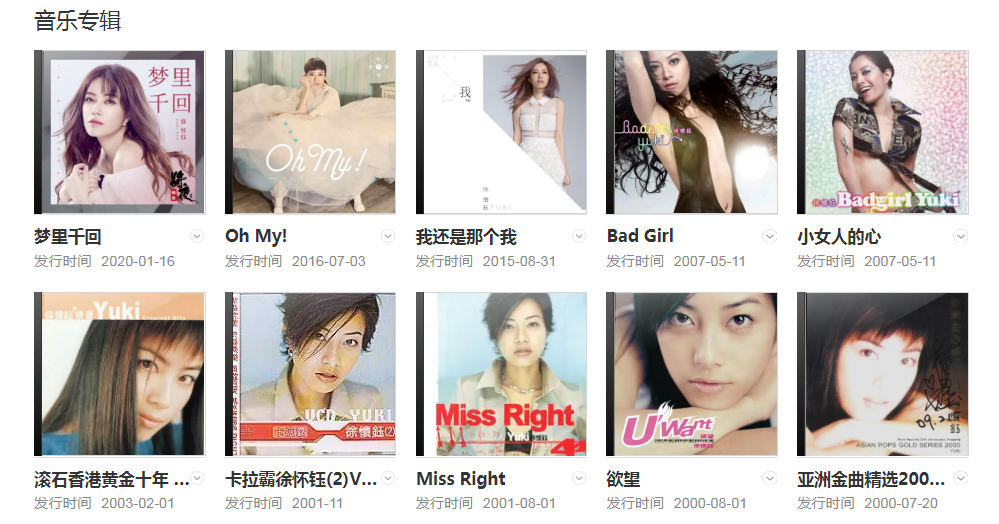 代表作品:我是女生、分飛、妙妙妙、怪獸、LOVE、Miss Right、Bad Girl、我還是那個我、Oh My!、向前沖、天使、天地傳說魚美人、夢里千回