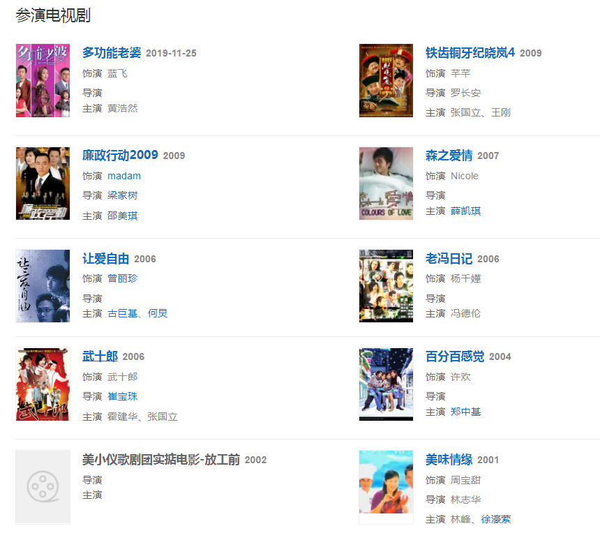 代表作品:可惜我是水瓶座、處處吻、小城大事、野孩子、少女的祈禱、再見二丁目、假如讓我說下去、飛女正傳、勇、姊妹 、人情世故、撈月亮的人 、花好月圓夜、志明與春嬌 、春嬌與志明、春嬌救志明 、千杯不醉、地下鐵、花好月圓 、完美嫁衣、三更2之餃子