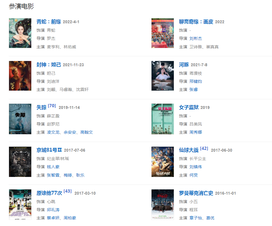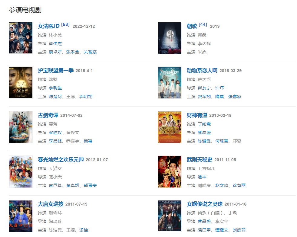 代表作品:女媧傳說(shuō)之靈珠、雪山飛狐、古劍奇譚、前度、千機(jī)變、公主復(fù)仇記、大唐女巡按、浣花洗劍錄