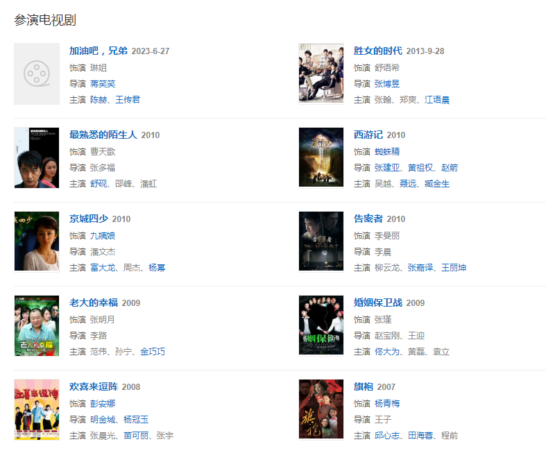 代表作品:女人行、新神雕俠侶、西游記