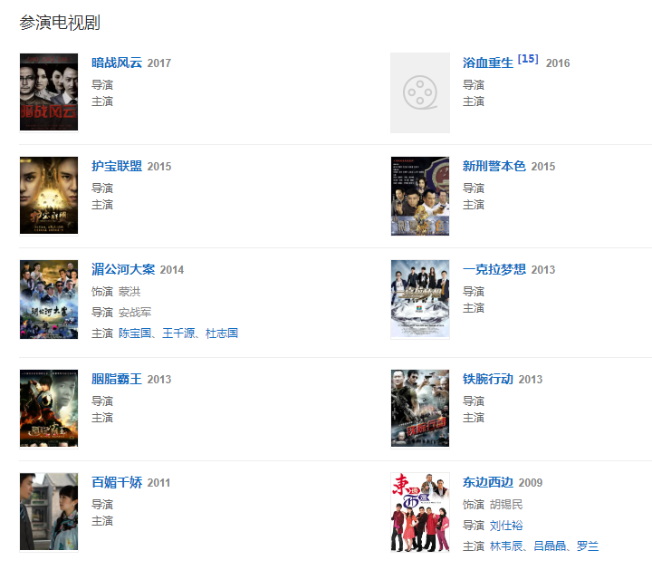 代表作品:公仆、喋血雙雄、龍虎風(fēng)云、兄弟
