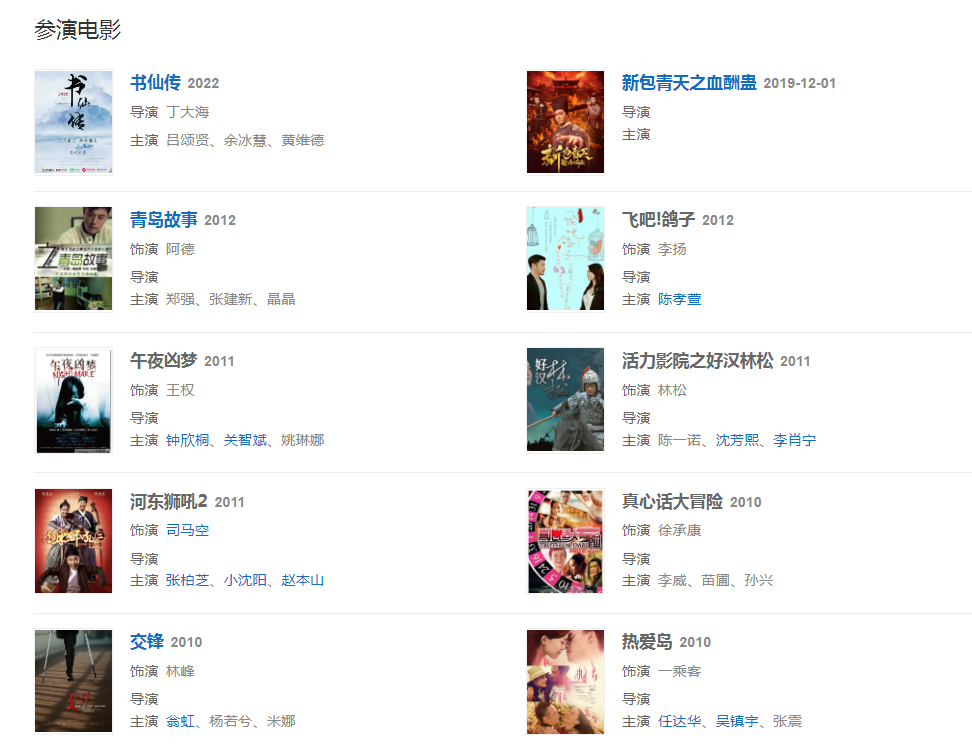 代表作品:大清后宮、京華煙云、新三國、大唐游俠傳、流星蝴蝶劍、懷玉公主、霍去病、封神榜之武王伐紂