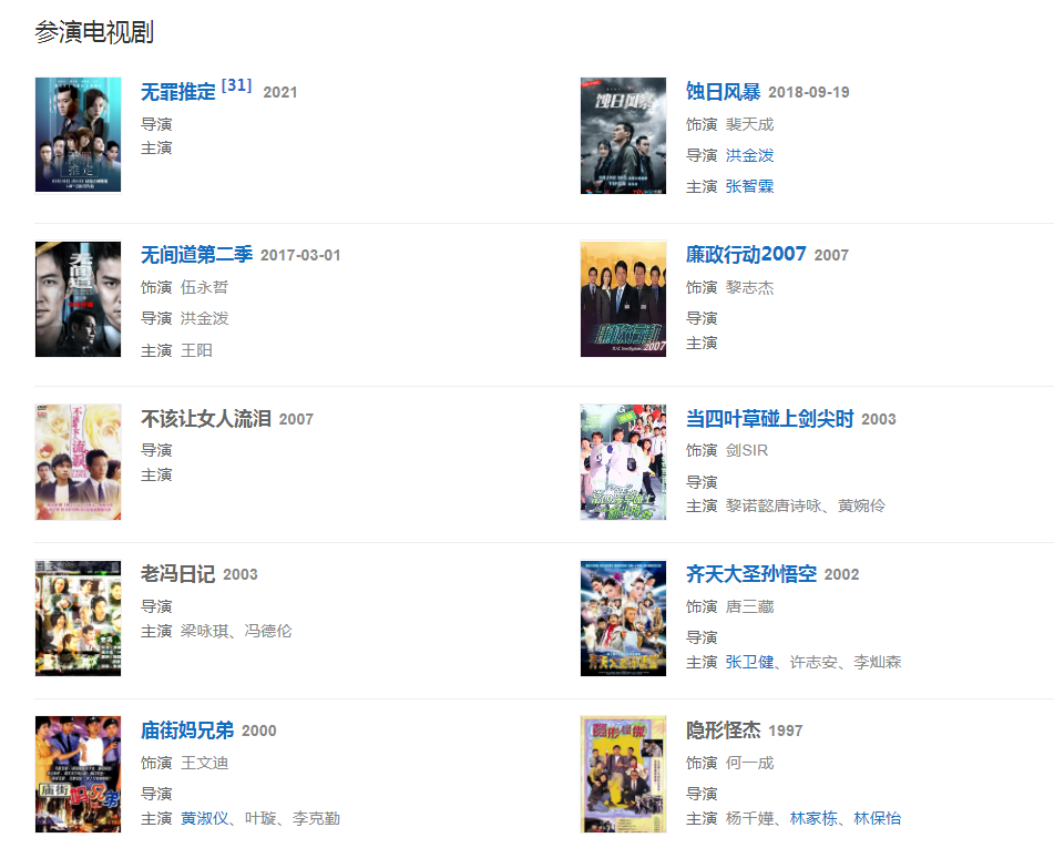 20173月,參演電視劇《無間道》,飾演伍永哲。