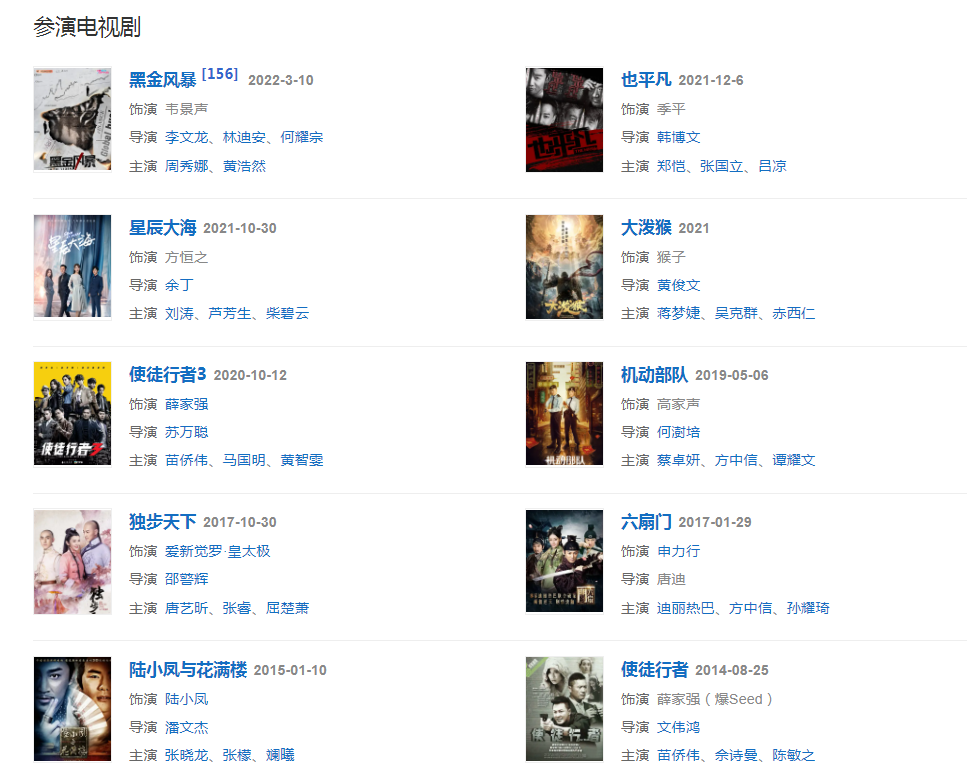 2019年主演犯罪動(dòng)作電影《反貪風(fēng)暴4》和警匪網(wǎng)劇《機(jī)動(dòng)部隊(duì)》。