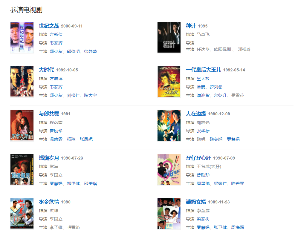 1985年,與梁朝偉合作主演了電視劇《新扎師兄》,劇中飾演冷傲的倪峰Fit佬,其個(gè)人憑借該角色嶄露頭角。