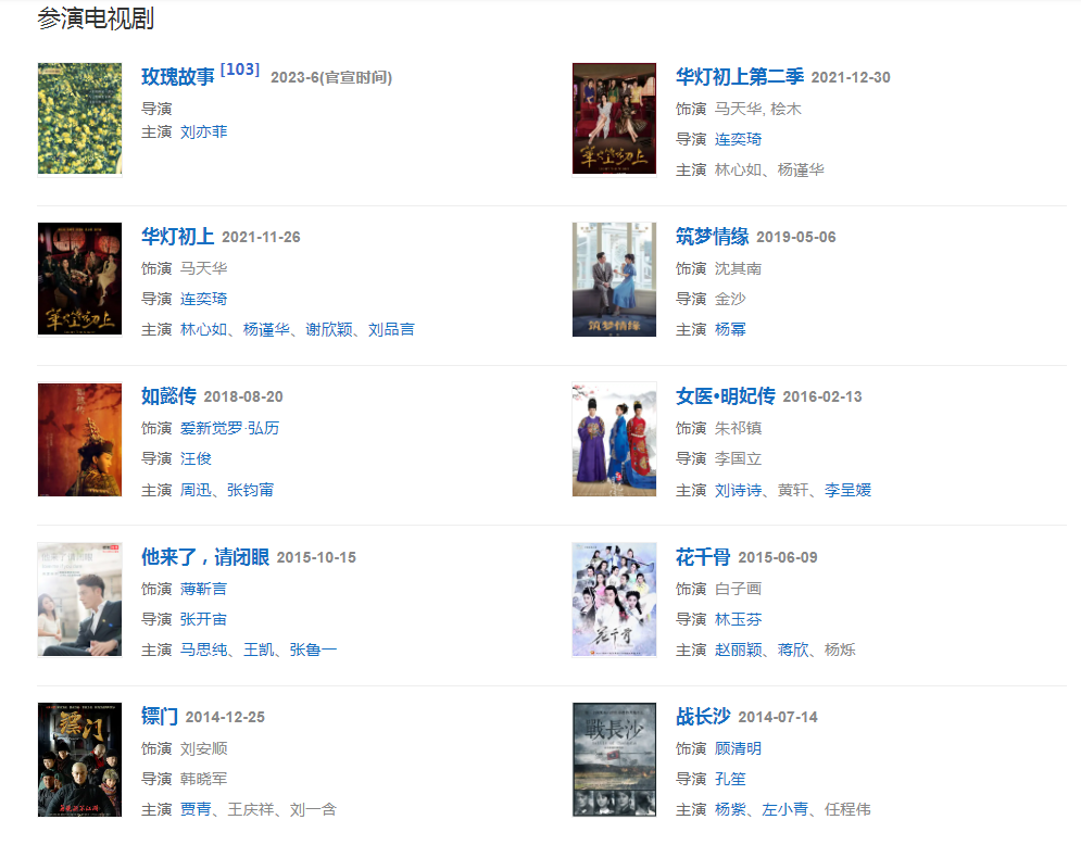 代表作品:戰(zhàn)長沙、花千骨、笑傲江湖、如懿傳、仙劍奇?zhèn)b傳三、天下第一、金玉良緣、海豚灣戀人、他來了,請閉眼、鏢門、怪俠一枝梅