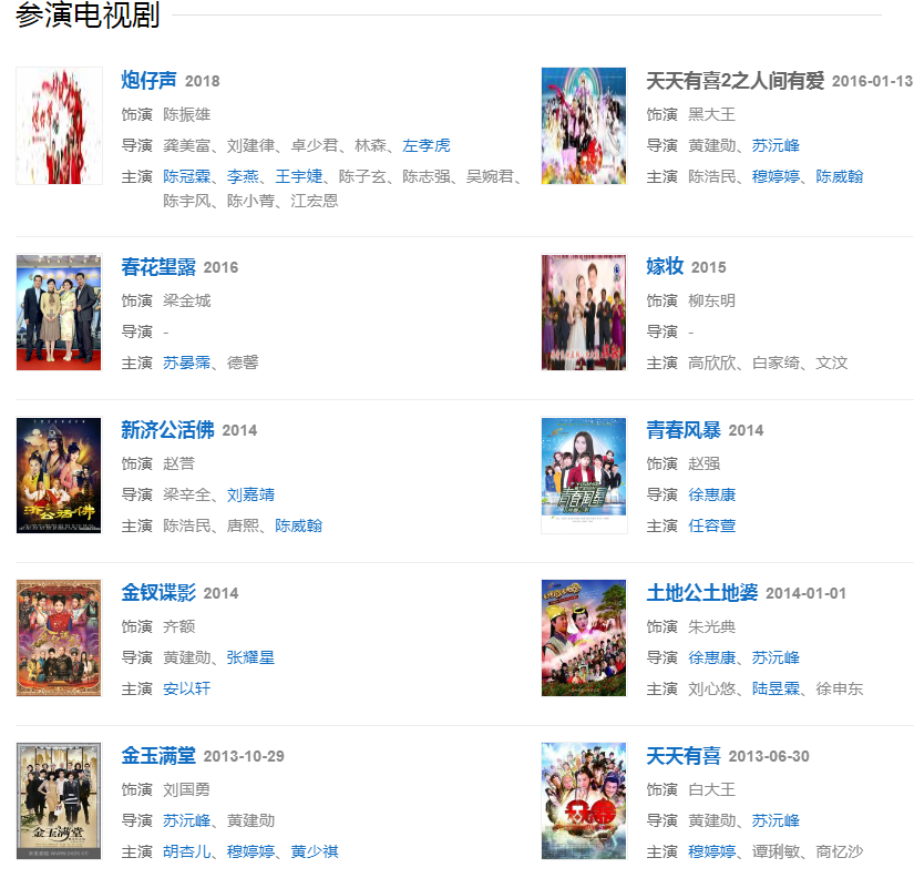 代表作品:百萬新娘、《不了情》、《戲說乾隆》、《深宮諜影》