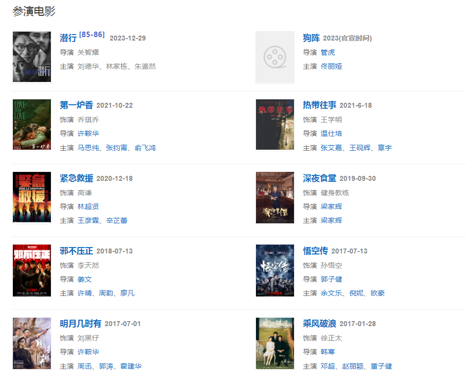 代表作品:翻滾吧!阿信、聽(tīng)說(shuō)、湄公河行動(dòng)、邪不壓正、激戰(zhàn)、破風(fēng)、乘風(fēng)破浪、悟空傳、匆匆那年、緊急救援