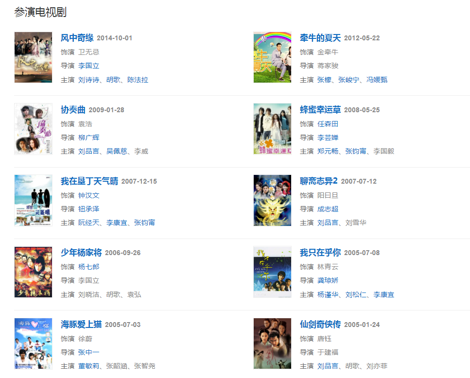 2005年,因在仙俠劇《仙劍奇?zhèn)b傳》中飾演唐鈺一角而受到關(guān)注。