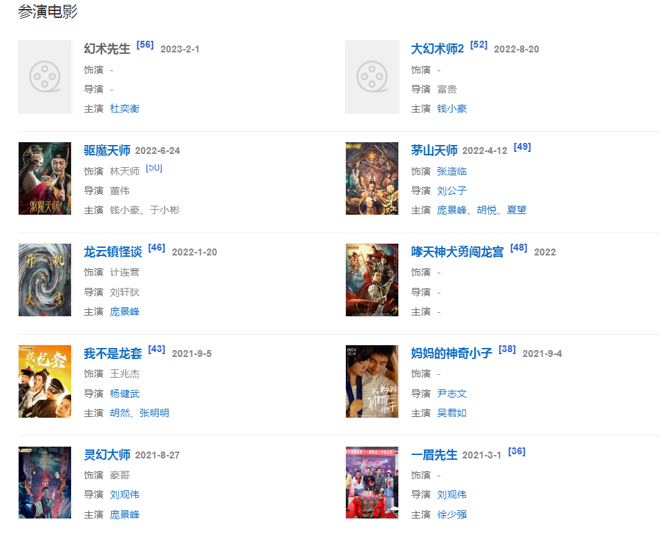 2022年4月12日,主演的電影《茅山天師》在愛奇藝上線播出,在片中飾演張造臨。6月28日,主演的電影《驅(qū)魔天師》在優(yōu)酷、愛奇藝播出,在片中飾演林天師。