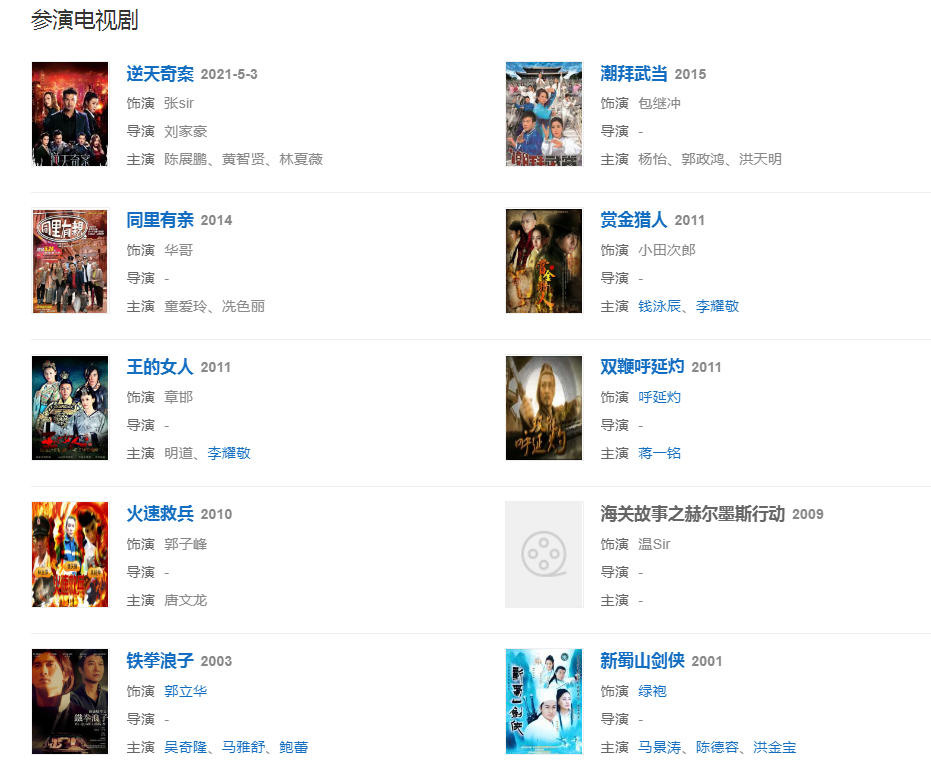 代表作品:霍東閣、大頭綠衣斗僵尸、叉手、僵尸