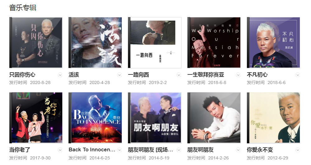 2014年發(fā)行《Back To Innocence 重回巫啟賢演唱會(huì)現(xiàn)場(chǎng)錄音》全紀(jì)錄DVD