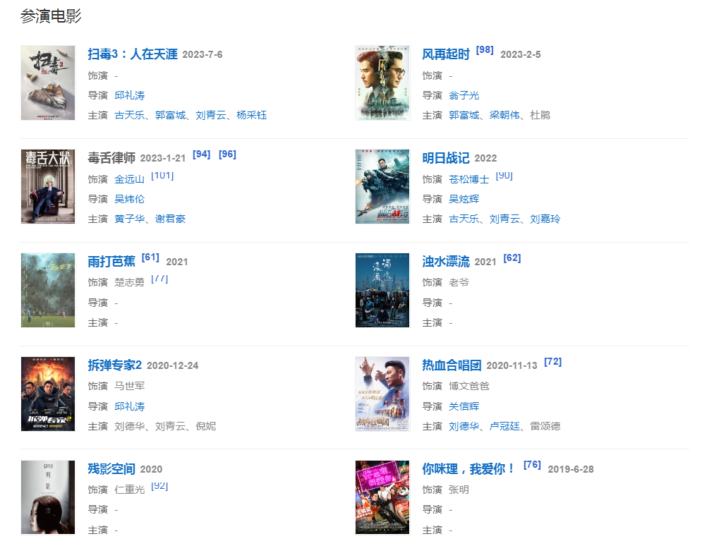 2020年11月13日,參演電影《熱血合唱團》,飾演博文爸爸一角。