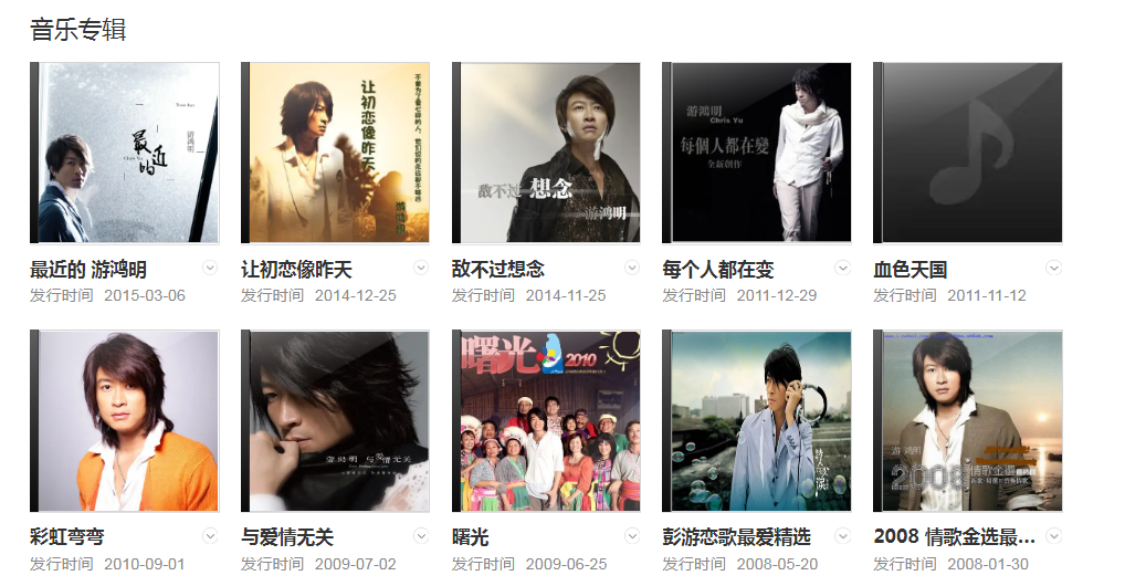 2002年發(fā)行創(chuàng)作精選輯《戀上游鴻明》,獲選G-music風(fēng)云榜白金音樂獎(jiǎng)十大金碟獎(jiǎng)。