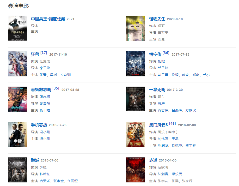 代表作品:男兒本色、無間道、志明與春嬌、龍虎門、第一誡、男才女貌、澳門風(fēng)云2、一念無明、頭文字D、車手