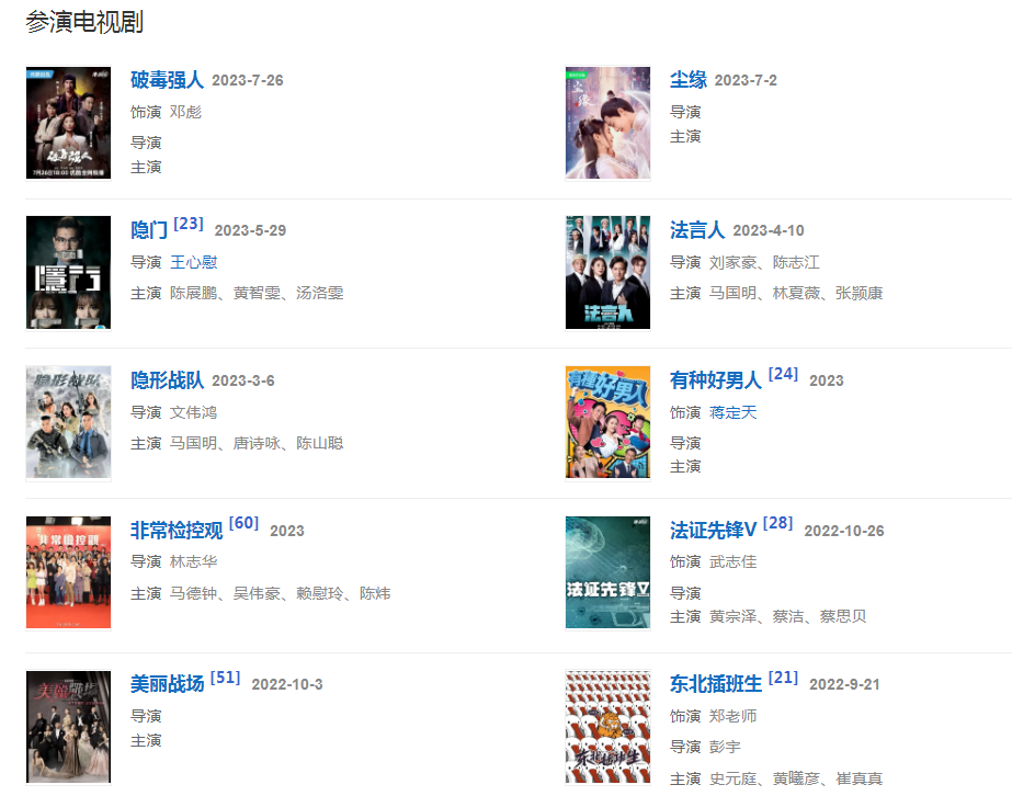 代表作品:天龍八部、保護(hù)證人組、刑事偵緝檔案II