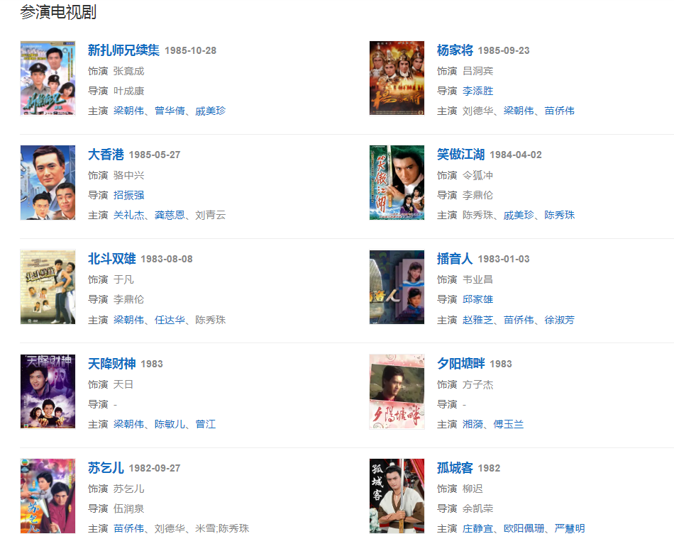 1980年在民國(guó)劇《上海灘》中飾演許文強(qiáng)。