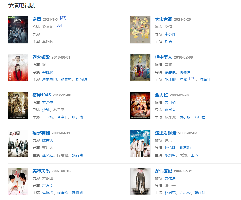 2021年3月20日,與劉濤主演的古裝歷史劇《大宋宮詞》在愛奇藝、騰訊視頻、優(yōu)酷播出。