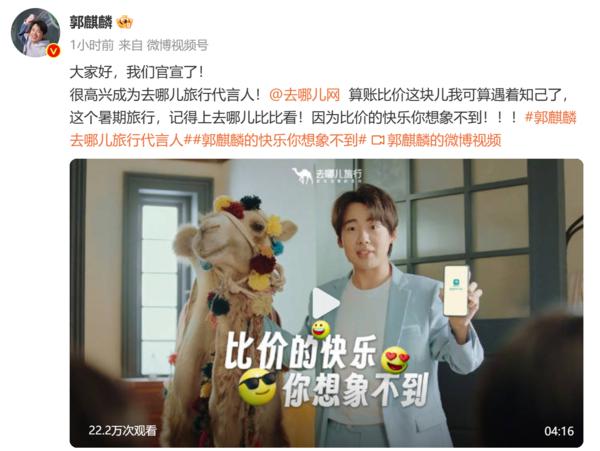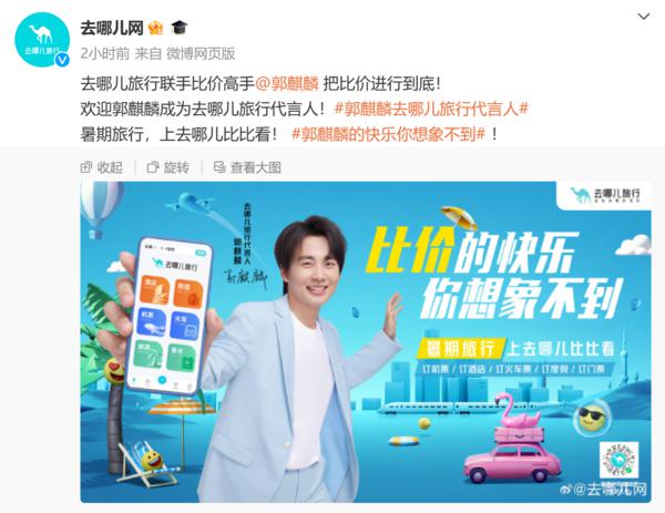 把比價(jià)進(jìn)行到底!去哪兒網(wǎng)官宣品牌代言人郭麒麟