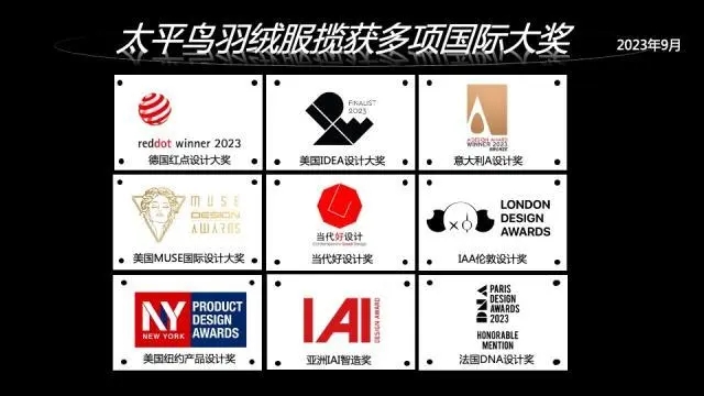 太平鳥羽絨服以出色設(shè)計(jì),攬獲多項(xiàng)國(guó)際設(shè)計(jì)大獎(jiǎng)?!敬螵?jiǎng)資料圖】