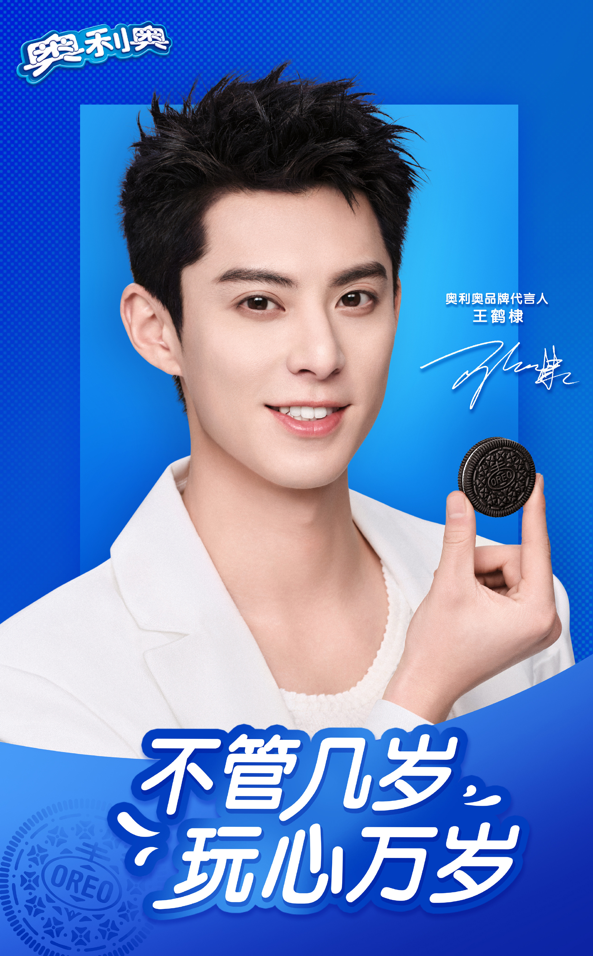 3 月 31 日,奧利奧官宣王鶴棣(明星代言公司)為品牌代言人,官宣 pv 以黑白奧利奧拼貼的形式再現(xiàn)了代言人玩心無(wú)限的頭號(hào)玩家身份,呼應(yīng)品牌「不管幾歲,玩心萬(wàn)歲」的品牌理念,此后二者將繼續(xù)攜手和大家一起率真做自己。