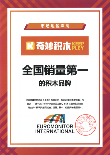 自1994年注冊(cè)“啟蒙”品牌做原創(chuàng)積木起,啟夢(mèng)玩具始終堅(jiān)持打造高品質(zhì)積木產(chǎn)品。一路穩(wěn)扎穩(wěn)打的啟夢(mèng)玩具,產(chǎn)品暢銷40余個(gè)國(guó)家和地區(qū),無疑已是積木行業(yè)的領(lǐng)軍企業(yè)。今年3月,奇妙積木KEEPPLEY還被國(guó)際權(quán)威第三方市場(chǎng)研究機(jī)構(gòu)Euromonitor認(rèn)證為“全國(guó)銷量首位的積木品牌”(注1)。