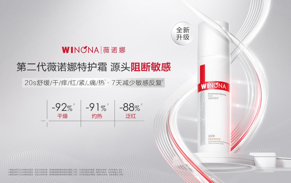 今年3月1日,薇諾娜舉辦品牌2.0戰(zhàn)略升級發(fā)布會,官宣正式邁入2.0階段,從“專注敏感肌”升級到“專研敏感肌”,從敏感肌治愈走向皮膚健康自由的新時代。如果說“薇諾娜1.0=敏感肌”,那么薇諾娜2.0=敏感肌護理解決方案=皮膚健康自由美。薇諾娜將提供敏感肌護理的全功效系統(tǒng)解決方案,拓寬敏感肌功效護理的邊界,滿足敏感肌的修護、防曬、美白、抗衰等一系列進階護膚需求。