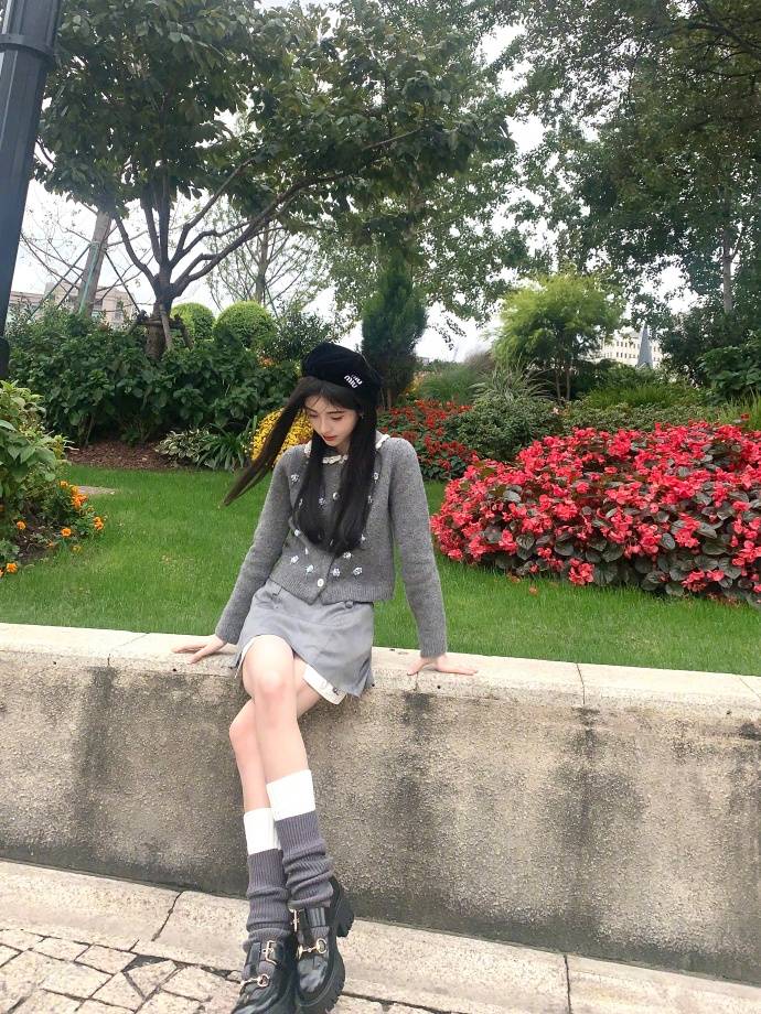 鞠婧祎穿灰色毛衣曬初冬隨拍 游逛花園元氣滿滿