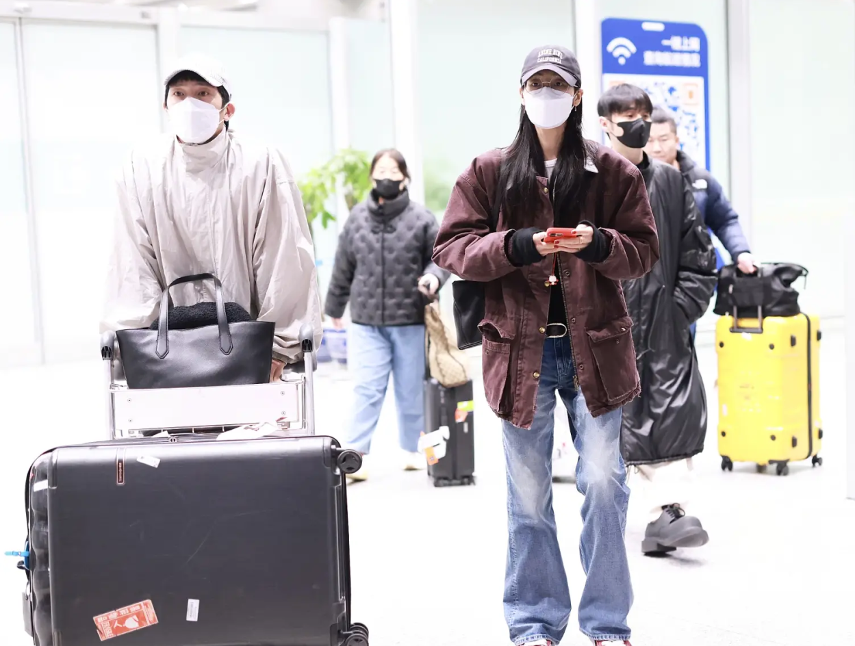 2月20日凌晨,井柏然、劉雯牽手抵達(dá)北京機(jī)場(chǎng)。