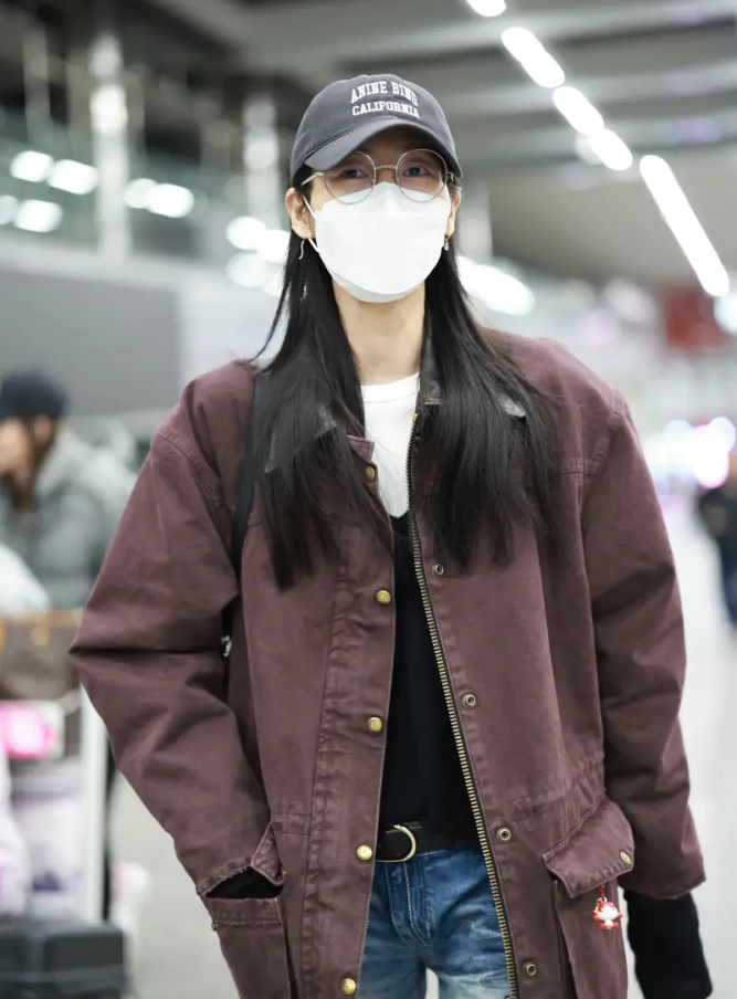 劉雯穿咖色外套氣質(zhì)出眾。